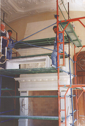 | Restauración de la chimenea de la Residencia del Embajador de EEUU, bajo la dirección de los arquitectos Marcelo Leguizamón y Francisco Ezcurra. | |
